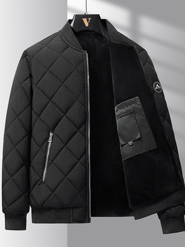 Fashion Rhombic-sewing Design Cotton Coat Winter Warm Thickened Baseball Jacket Casual Solid Color Outwear Clothing For Men